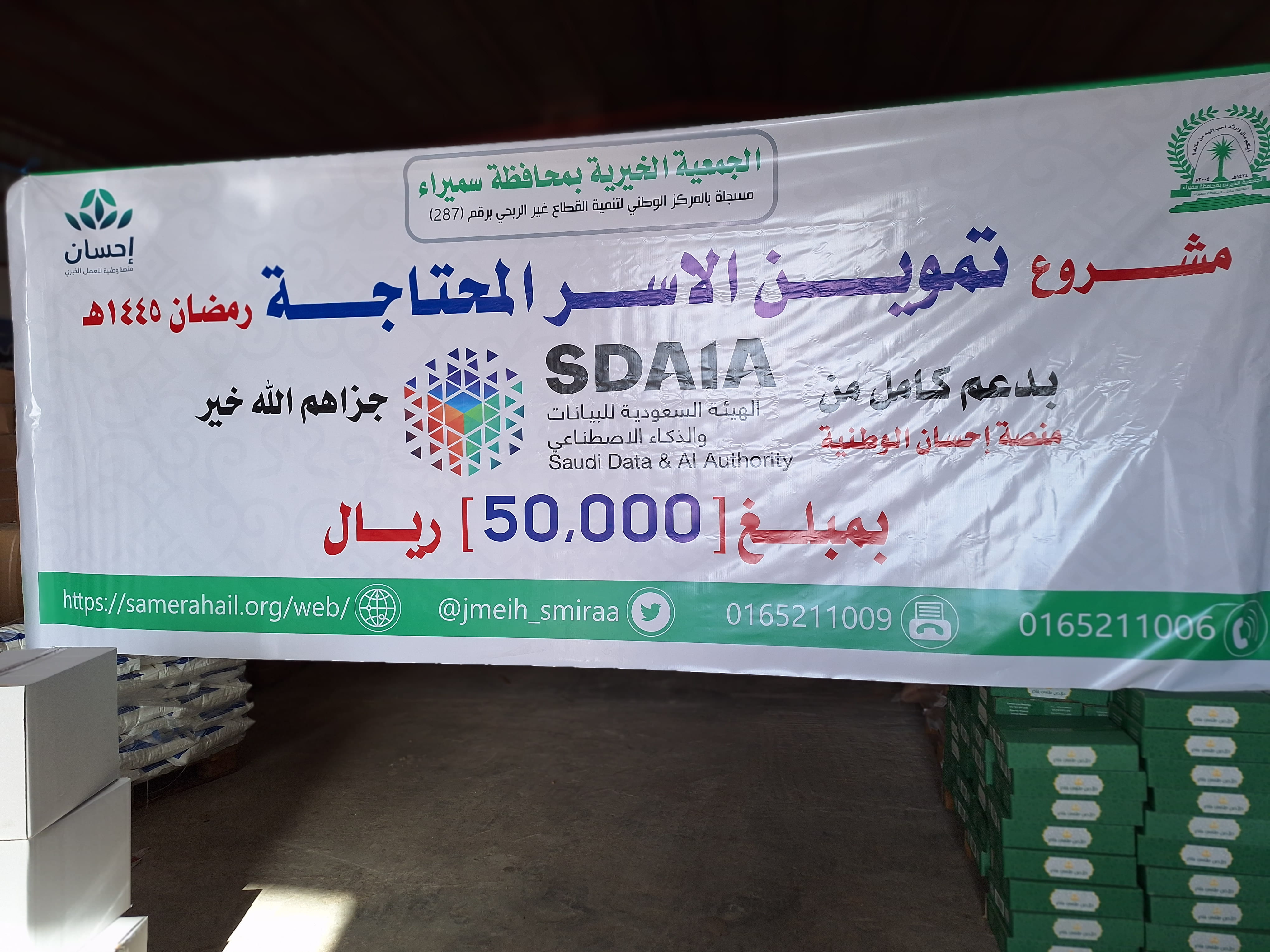 قامت الجمعية الخيرية بمحافظة سميراء في شهر رمضان 1445هـ بتوزيع السلة الغذائية المقدمة من منصة احسان وقد شملت اغلب المواد الغذائية الاساسية التي يحتاجها كل بيت وقد شمل التصرف جميع فئات المستفيدين بمحافظة سميراء